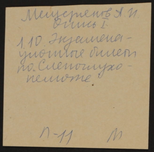 Специальный лекционный курс на факультете психологии МГУ по теме «Психологические проблемы слепоглухонемоты» (148 листов). Рукопись. Машинопись. Экзаменационные билеты по «Слепоглухонемоте». (11 листов). Машинопись.